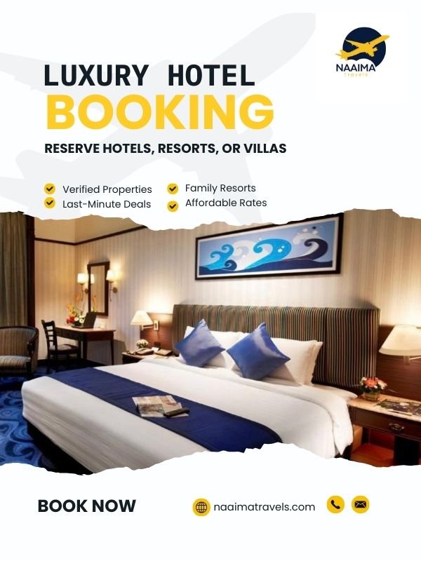 Finding the right hotel can make or break any journey, and at NAAIMA TRAVELS, we specialize in providing trusted, comfortable, and conveniently located hotel reservations for Hajj & Umrah pilgrims, business travelers, and leisure tourists alike. From hotels near Haram in Makkah and Madinah to international stays worldwide, we ensure every booking offers safety, cleanliness, and excellent amenities. Along with hotel reservations, we provide visa assistance, flight bookings, car rentals, and affordable Hajj & Umrah packages, making your entire trip smooth, stress-free, and memorable. Partnering with leading hotels, airlines, and transport providers, we deliver personalized support and travel solutions that put your comfort first.